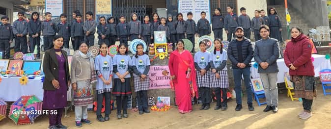 इसमें विद्यार्थियों की कलात्मक प्रतिभा और रचनात्मक सोच का अत्यंत सुंदर प्रदर्शन देखने को मिला। प्रदर्शनी में लिप्पन आर्ट (कच्छ, गुजरात की लोक कला), वरली आर्ट (महाराष्ट्र की जनजातीय कला), मधुबनी आर्ट, मंडला आर्ट, स्टोन पेंटिंग, बोतल आर्ट, पॉट पेंटिंग, मॉडर्न आर्ट और हिमाचली पत्थरों के चक्कों पर उकेरी गई कलाकृतियां विशेष आकर्षण का केंद्र रहीं। इसके अलावा विद्यार्थियों द्वारा तैयार किए गए विविध आर्ट एंड क्राफ्ट के नमूनों ने दर्शकों को खूब प्रभावित किया। इस अवसर पर कला प्रतियोगिता में विभिन्न कक्षाओं के विद्यार्थियों ने उत्कृष्ट प्रदर्शन किया। पहली कक्षा में रीवा ने पहला, स्वास्तिक ने दूसरा और वंशिका ने तीसरा स्थान प्राप्त किया। दूसरी कक्षा में राध्या ने पहला, अर्शिया ने दूसरा और विराज ने तीसरा स्थान प्राप्त किया। तीसरी कक्षा में सृष्टि ने पहला, रिया ने दूसरा और नंदिनी ने तीसरा स्थान हासिल किया।