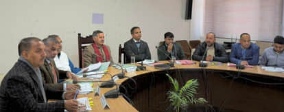 जिला खनिज फाउंडेशन ट्रस्ट की समीक्षा बैठक में मौजूद मंत्री राजेश धर्माणी व अन्य। स्रोत: डीपीआरओ
