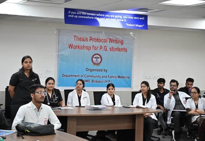 बिलासपुर। अखिल भारतीय आयुर्विज्ञान संस्थान बिलासपुर के सामुदायिक और पारिवारिक चिकित्सा विभाग की ओर से पोस्ट ग्रेजुएट छात्रों के लिए थीसिस प्रोटोकॉल राइटिंग वर्कशॉप का आयोजन किया गया।