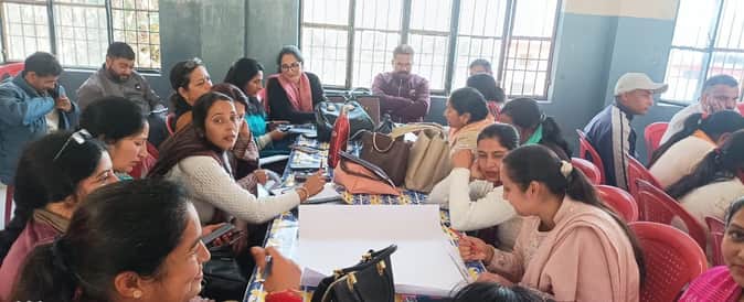 बिलासपुर में आयोजित प्री प्राइमरी कक्षाओं के अध्यापकों की कार्यशाला में मौजूद अध्यापक। स्रोत: श