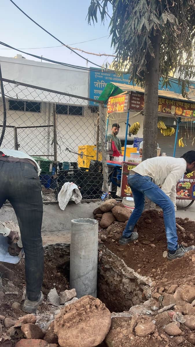 बद्दी साई मार्ग पर बिजली बोर्ड के कर्मचारी गड्ढे खोदते हुए- संवाद।
