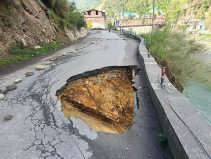 Chamba News: भूस्खलन से एनएच का बड़ा हिस्सा रावी में समाया