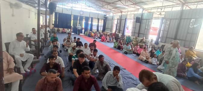 चंबा के संत निरंकारी भवन मुगला में सत्संग सुनते अनुयायी।संवाद