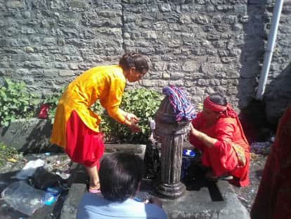 चंबा मेडिकल कॉलेज के पास खुले में कपड़े धोते मरीजों के तीमारदार। संवाद