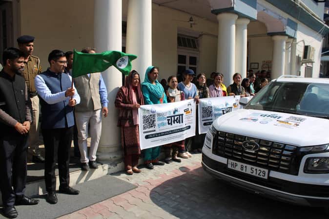 चंबा डिजिटल एवं फाइनेंशियल लिटरेसी अभियान को हरी झंडी दिखा रवाना करते उपायुक्त।संवाद