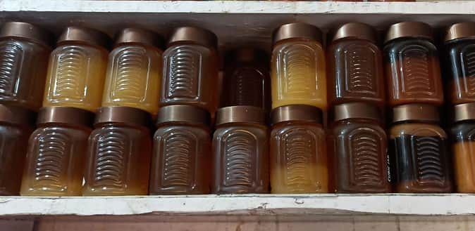 चंबा दुकान में बेचने के लिए रखा गया देसी शहद।संवाद