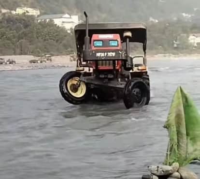 चंबा में राजपुरा के पास सुबह से शाम तक रावी नदी में उतरते रहते हैं ट्रैक्टर