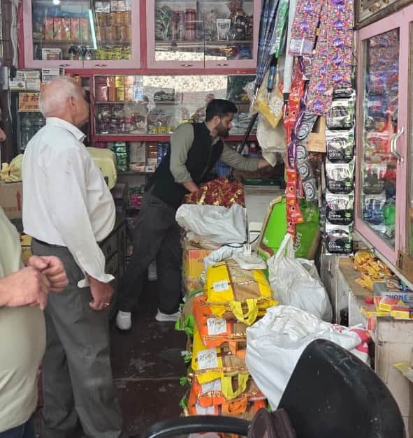 शहर में दुकानों में निरीक्षण करते जिला खाद्य एवं आपूर्ति नियंत्रक कर्ण ठाकुर। विभाग