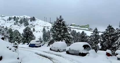 चंबा के डलहौजी में बर्फबारी के बाद का नजारा।संवाद