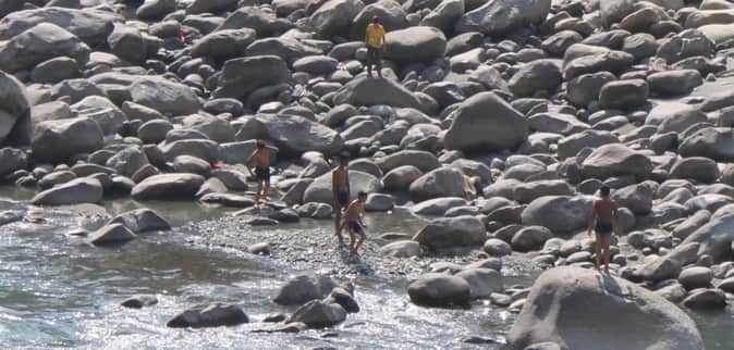 चंबा। तपती दोपहर में रावी के तेज बहाव के बीच युवा गर्मी से राहत पाने के लिए जोखिम की डुबकी लगा रहे हैं। तैराकी का यह शौक युवाओं की जान पर भारी पड़ सकता है।