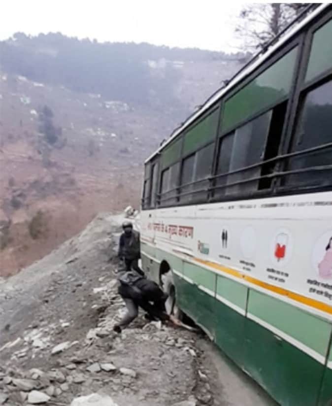 Chamba News: सड़क धंसने से 15 यात्रियों समेत खाई में गिरने से बची एचआरटीसी की बस