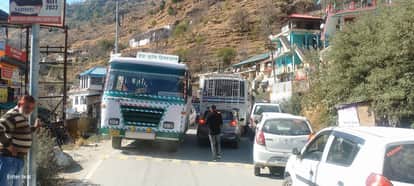 चंबा में तीसा के पास लगा वाहनों का जाम।संवाद