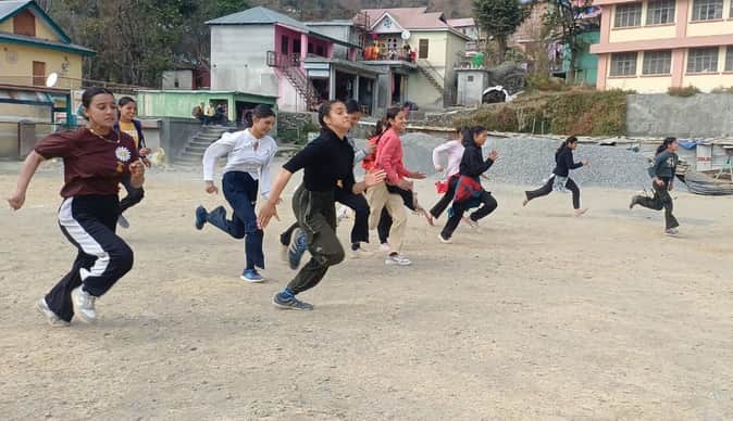 चंबा के तेलका कॉेलेज में खेलकूद प्रतियोगिता के दौरान सौ मीटर रेस के दौरान खिलाड़ी।संवाद