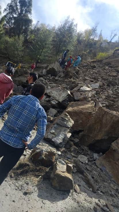 अचानक पहाड़ी से गिरा मलबा, सड़क के दोनों तरफ लगीं कतारें