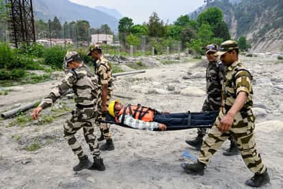 चंबा मेगा मॉक ड्रिल के दौरान घायल को रेस्कयू करते एनडीआरएफ के जावन।संवाद