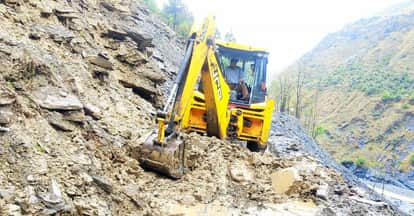 हाईवे को बहाल करने के लिए मौके पर तैनात रही मशीनरी और मजदूर
