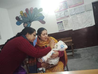 चंबा के चौतड़ा में नौनिहाल को पोलियो ड्रॉप्स पिलाती आंगनबाड़ी कार्यकर्ता।संवाद