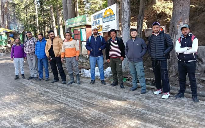 चंबा के खज्जियार में बस का इंतजार करते लोग।संवाद