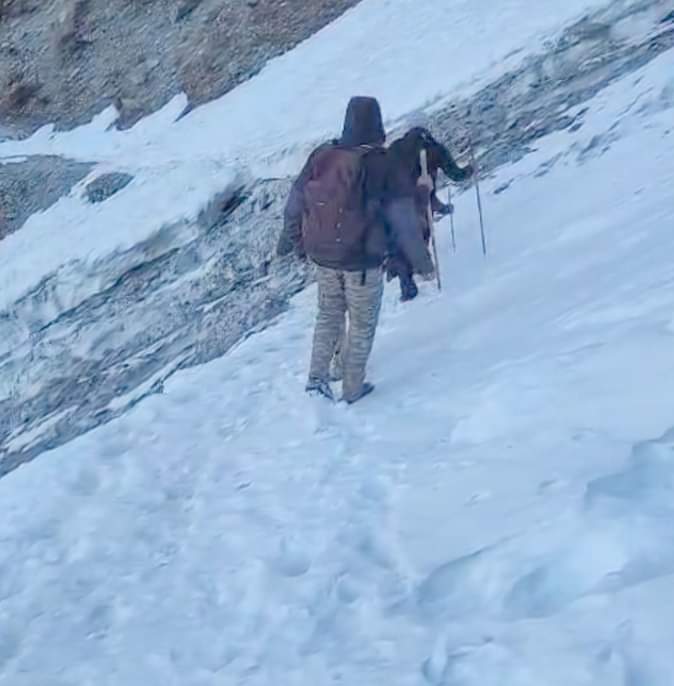 चंबा के मणिमहेश में भालू की तलाश के लिए गलेशियर से गुजरती रेस्क्यु टीम।स्रोत विभाग