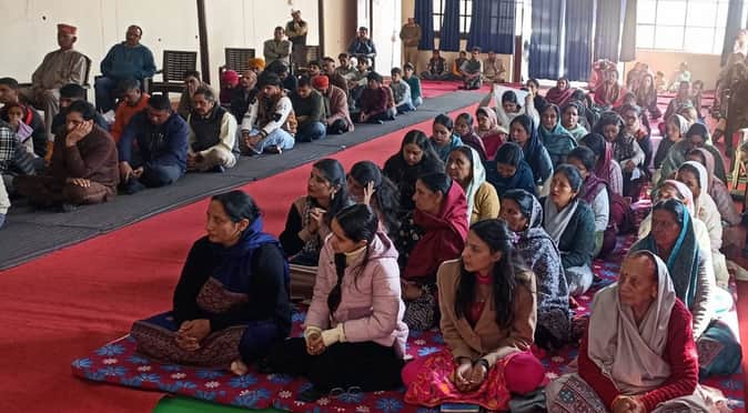 चंबा के सत्संग भवन मुगला में सत्संग सुनते अनुयायी।संवाद