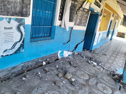 राजकीय प्राथमिक विद्यालय बाट का भवन खस्ताहाल, भवन में आई दरारें, गिरने की कगार पर