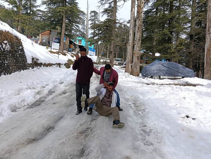 इस दौरान स्थानीय लोगों ने बताया कि लोक निर्माण विभाग ने जेसीबी मशीन से सड़क पर बर्फ तो हटाई है, लेकिन एक परत अभी भी सड़क पर ही जमी है। पूर्वाह्न 11:20 बजे पंजाब के पर्यटक गुरमीत सिंह अपने दोस्तों के साथ बर्फ का आनंद लेने के लिए पहुंचे। उन्होंने बताया कि झील मैदान में भले ही पर्यटक बर्फ का आनंद उठा रहे हैं, लेकिन सड़क पर फिसलने से चोट लगने का खतरा भी बना हुआ है। इसके समाधान के लिए प्रशासन और विभाग को उचित कदम उठाने की जरूरत है।