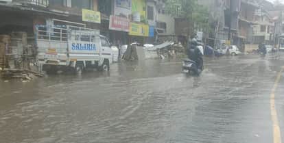 भारी बारिश के कारण सारा पानी नेशनल हाईवे पर बह रहा था। एनएच तालाब के रूप में बदल चुका था। बारिश का पानी दुकानों में घुस गया। इस कारण दुकानदारों ने दुकानें खोलने के बजाय घर लौटना ही बेहतर समझा। दुकानदारों ने आरोप लगाया है कि नेशनल हाईवे पर निकासी नालियों की हालत ठीक नहीं हैं। बारिश का पानी दुकानों में घुस रहा है।