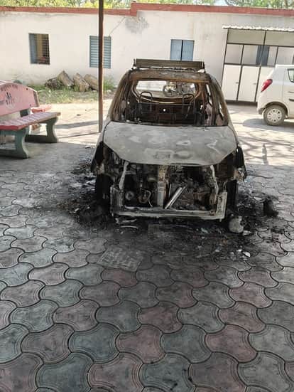 ग्राम पंचायत नारा के दरोबड़ में जली कार। संवाद