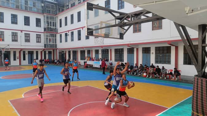 कांगड़ा में इंटर विवि बास्केटबाल प्रतियोगिता में दमखम दिखाते खिलाड़ी। -स्रोत: आयोजक