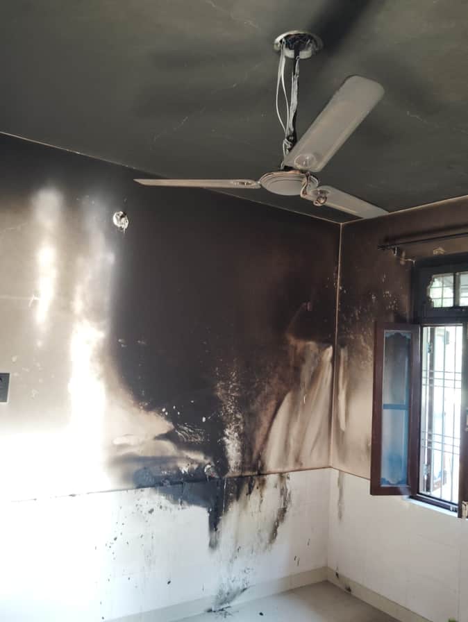 मिहाडपुर में आगजनी घटना के कारण जले इलेक्ट्रानिक उपकरण। स्रोत जागरूक पाठक