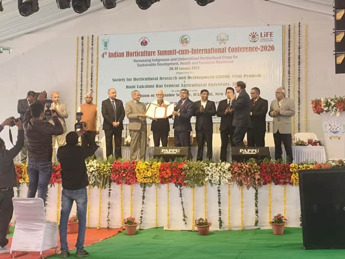 रानी लक्ष्मीबाई केंद्रीय कृषि विश्वविद्यालय, झांसी में आयोजित चतुर्थ बागवानी शिखर सम्मेलन सह अंतरराष्ट्रीय सम्मेलन के दौरान 28 जनवरी 2026 को प्रो. एसके शर्मा को इस पुरस्कार से नवाजा गया। यह अवार्ड उनके अटूट समर्पण, वैज्ञानिक दूरदृष्टि और भारतीय बागवानी के सतत विकास में उनके अमूल्य योगदान का प्रतीक है।
