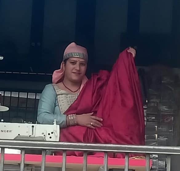 किरवीं की बनीता घर पर सिलाई करते हुए। संवाद