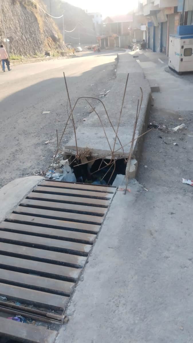 टौणी देवी में कांगड़ा बैंक चौक के पास नालियों पर निकले सरिये। संवाद