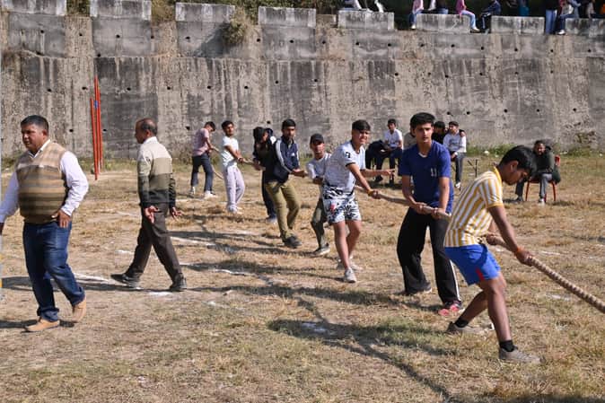 सिद्धार्थ राजकीय महाविद्यालय नादौन में आयोजित रस्साकस्सी प्रतियोगिता में भाग लेते खिलाड़ी। स्रो