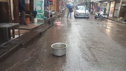 नगर निगम हमीरपुर के तहत मुख्य बाजार में भवन की छत से सड़क पर गिर रहे पानी को रोकने के लिए रखे ग