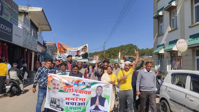 Hamirpur (Himachal) News: बिझड़ी में मनरेगा बचाओ संघर्ष के तहत निकाली रैली