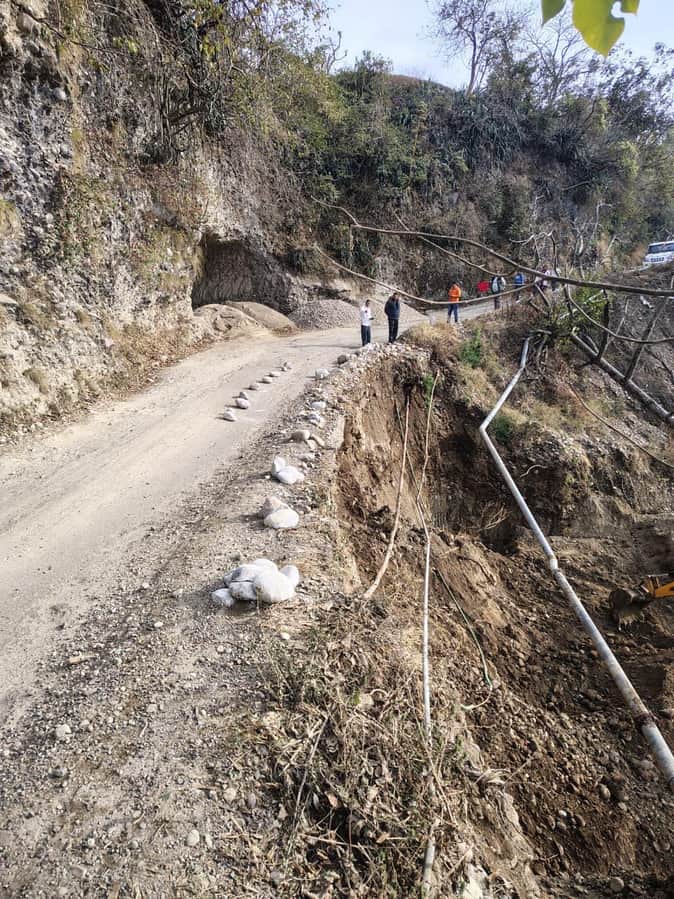 टौणी देवी–उहल–कक्कड़ सड़क मार्ग पर धंसा डंगा। स्रोत : जागरूक पाठक