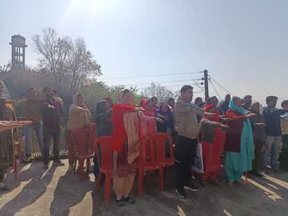 ग्राम पंचायत डेरा में ग्राम सभा के दौरान उपस्थित लोग। संवाद