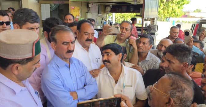 गगल हवाई अड्डे पर मुख्यमंत्री सुखविंद्र सुक्खू से मिलते हुए सरकारी अलॉटेड भूमि पर बसे परिवारों