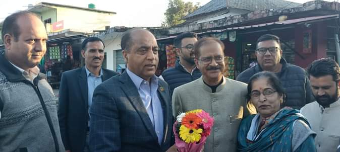 जांगल में पूर्व मुख्यमंत्री जयराम ठाकुर का स्वागत करते हुए पूर्व विधायक और अन्य
