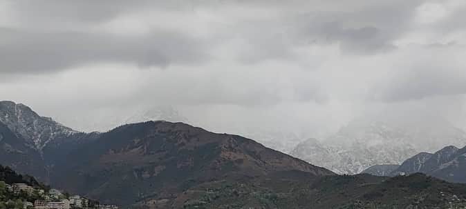 धर्मशाला। जिला कांगड़ा में रविवार सुबह मौसम के मिजाज में आए अचानक बदलाव ने पर्यटकों और आम जनमानस को धूप से राहत दी। आसमान में सुबह से ही काले बादलों का डेरा जमा रहा और तेज तूफान के साथ हुई हल्की बारिश से तापमान में गिरावट आई है। धौलाधार की पहाड़ियों सहित त्रियूंड और आदि हिमानी चामुंडा मंदिर की चोटियों पर हल्का हिमपात हुआ है।