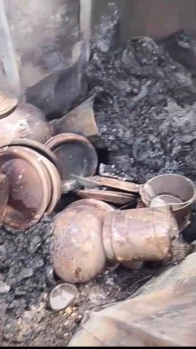 इंदौरा के तहत ग्राम पंचायत उलेहड़ियां में एक घर में लगी आग से जला सामान। जागरूक पाठक