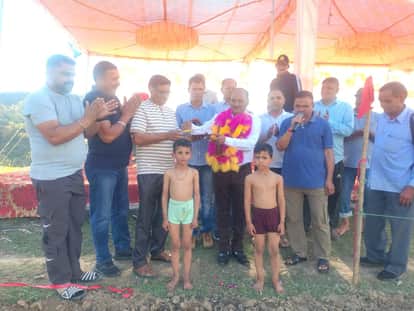 भ्रान्ता पंचायत के गांव पट्ट छिंज मेले में विजेता पहलवानों को पुरस्कार देते पंचायत प्रधान राज ध