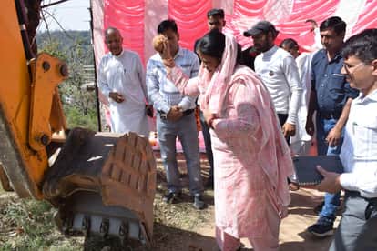 सकरी में सड़क का कार्य शुरू करवातीं विधायक कमलेश ठाकुर। -स्रोत : एपीआरओ