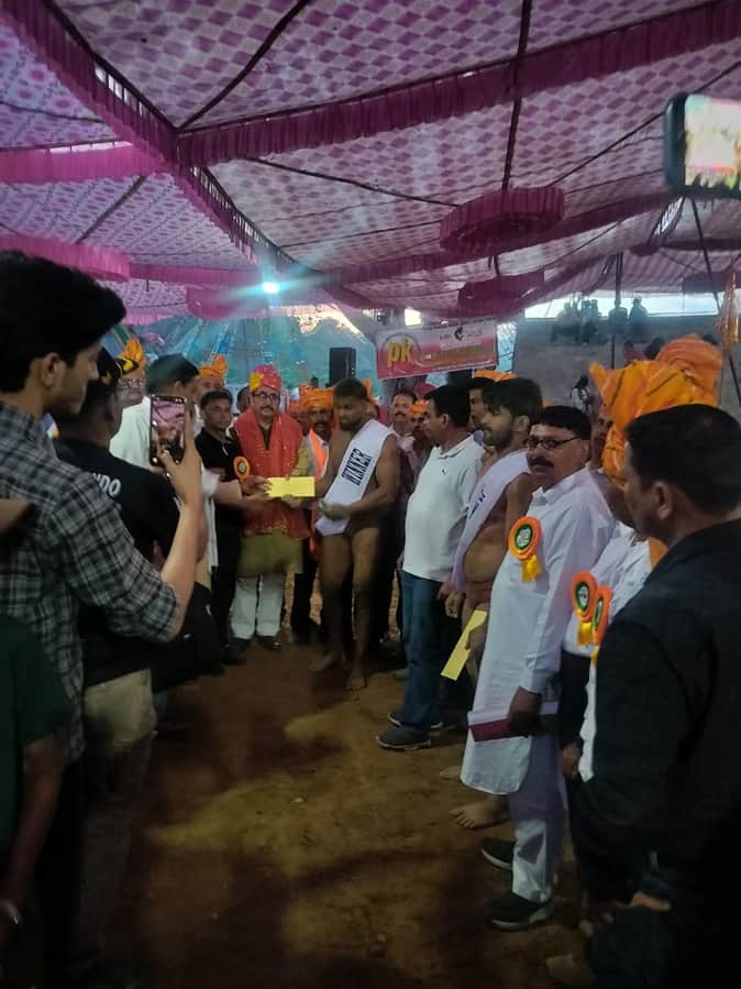 भेड़ू महादेव रली छींज मेला में कुश्ती विजेता व उपविजेता को सम्मानित करते विधायक विपिन सिंह परमा