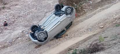 Kangra News: अनियंत्रित होकर पलटी कार, दंपती बाल-बाल बचा