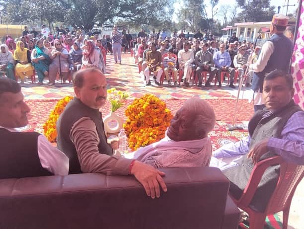 कथोली पंचायत में जनसभा में मौजूद पूर्व विधायक अर्जुन ठाकुर और अन्य। -स्रोत : जागरूक पाठक