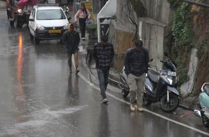 धर्मशाला में सोमवार को बारिश के बीच गंतव्य को जाते हुए लोग। अमर उजाला