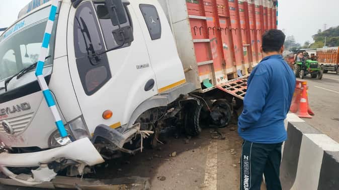 Kangra News: अनियंत्रित होकर डिवाइडर से टकराया तेज रफ्तार ट्रक, बड़ा हादसा टला