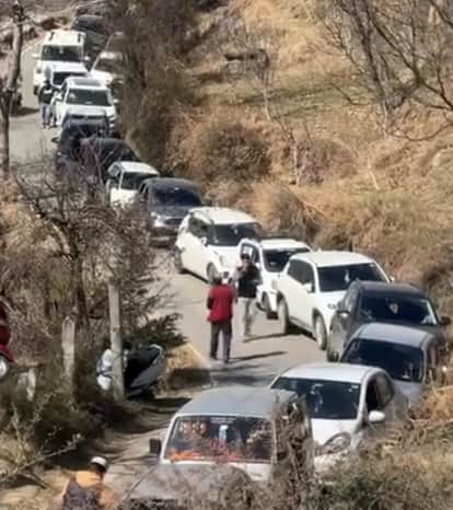 कुल्लू के बिजली महादेव सड़क पर शिवरात्रि के मौके पर पहुंचे ज्यादा वाहनाें से लगा लंबा जाम।-संव